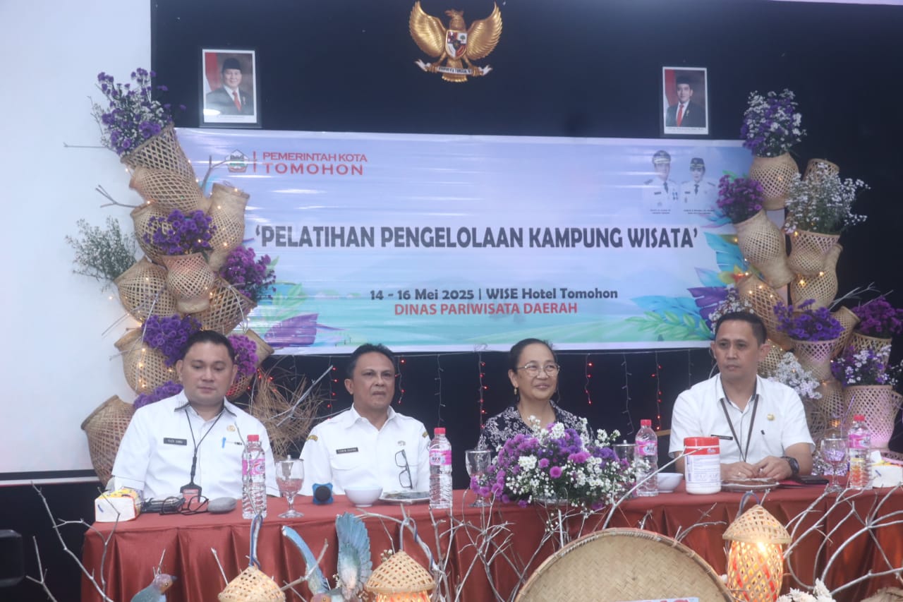 Tomohon, Jurnal123.com – Pemerintah Kota Tomohon melalui Dinas Pariwisata menggelar Pelatihan Pengelolaan Desa Wisata Tahun 2025, yang dibuka secara resmi oleh Sekretaris Daerah Kota Tomohon, Edwin Roring, SE, ME, pada Rabu, 14 Mei 2025, bertempat di Hotel Wise Tomohon. Pelatihan ini merupakan bagian dari upaya Pemerintah Kota Tomohon untuk meningkatkan pengelolaan sektor pariwisata, khususnya desa wisata, yang melibatkan masyarakat setempat.